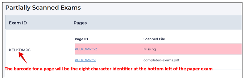 Incomplete exams where pages were missed in scanned or the barcode could not be read